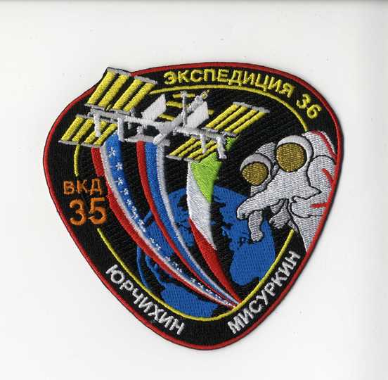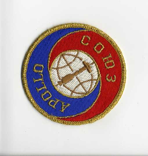 Первый раз эмблемы в полном смысле слова появились на скафандрах у экипажей «Союза» по программе ЭПАС «Союз-Аполлон» у А.А. Леонова и В.Н. Кубасова.