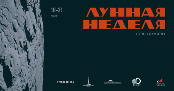 Дорогие друзья! С 18 по 21 июля приглашаем вас на «Лунную неделю». Организаторы: московский Музей космонавтики, Discovery Channel, арт-объединение CoolConnections и Телестудия Роскосмоса, при поддержке ИМБП РАН, издательства БОМБОРА и радио Ретро FM.
