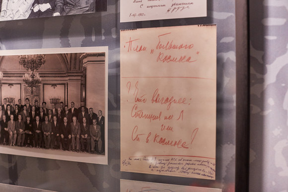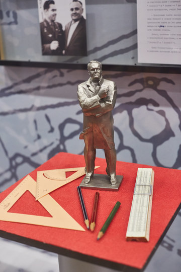 Эта своеобразная инсталляция приближает к нам время середины прошлого века и делает почти осязаемым легендарного Главного конструктора. Она словно предваряет неповторимое созерцание посетителями остановившегося мгновения в мемориальной экспозиции Дома-музея.
