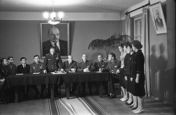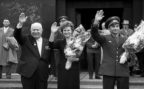 На фотографии: Н.С. Хрущёв, В.В. Терешкова, В.Ф. Быковский.