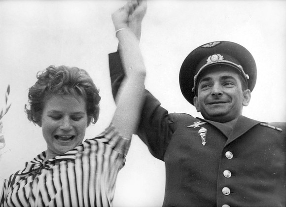 На фотографии: В.В. Терешкова и В.Ф.Быковский.
