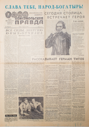 В ознаменование исторического полёта в космос Германа Степановича Титова Министерство связи СССР выпустило серию художественно оформленных почтовых марок и конвертов. Второй пилотируемый полет нашел отражение в тематических сериях значков и памятных медалей. Часть этой продукции представлена в собрании нашего музея.