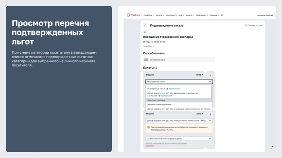 Билет приобретается на семью из 4-х человек: двое взрослых и двое детей 7-18 лет В соответствии с утвержденным Перечнем льгот |