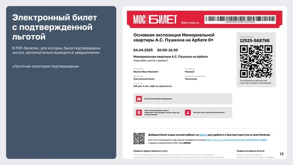 В соответствии с утвержденным Перечнем льгот Билет действителен 10 дней с даты продажи |